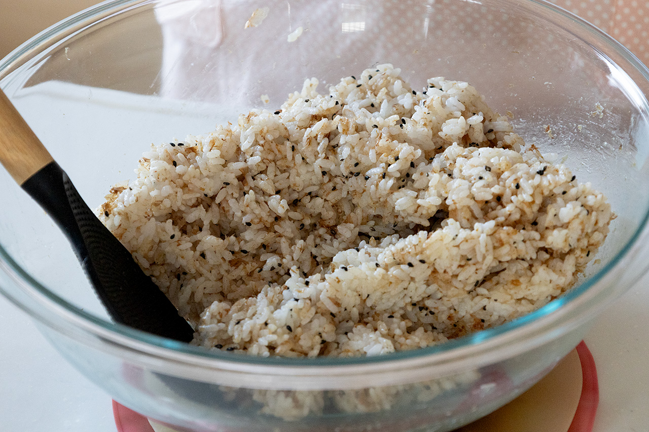 おにぎりは小学生の頃に母と作ったときが最後だったので、久しぶりでしたが苦なく作ることができました。前回、母と作ったときのおにぎりは塩とご飯とのりというシンプルなものでしたが、今回は混ぜご飯で作ってみました!