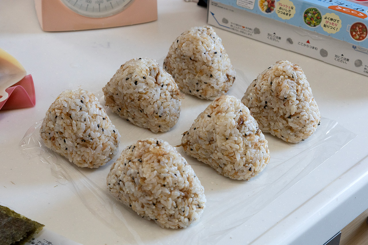 まだ作り慣れていないということもありますが、おにぎりを三角形に成形するときが一番難しかったです。精進します。