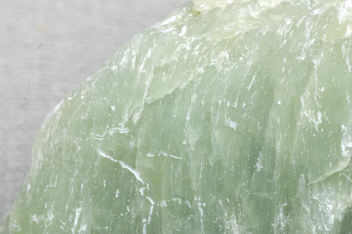 これは、占冠のトンネル工事で、蛇紋岩の層を掘っていた時に現れたものらしいです。もっと大きな塊だったのですが、その一部を頂いたものです。白っぽく透明感があって、品位が高いことがわかります。また、繊維状になっていて珍しいと思います。結構お気に入りの石なのです。現在では採集不可能です。分けてくれた方に感謝しています。